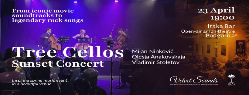 Tree Cellos Sunset Concert - 23. april - Itaka Library Bar - 19:00h